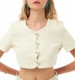 KREM RENGİ KISA KOLLU CROP CEKET
